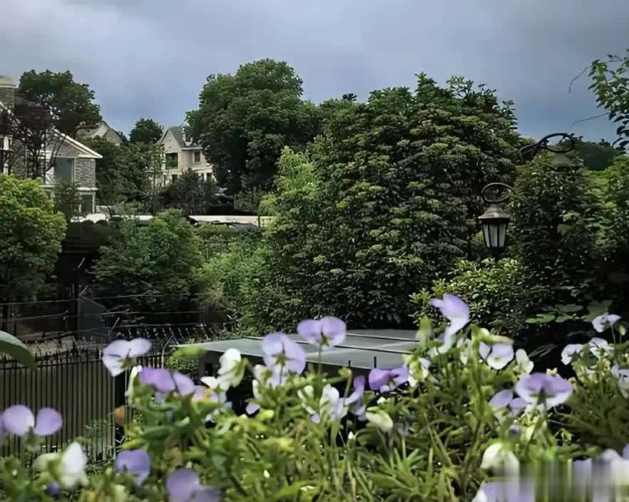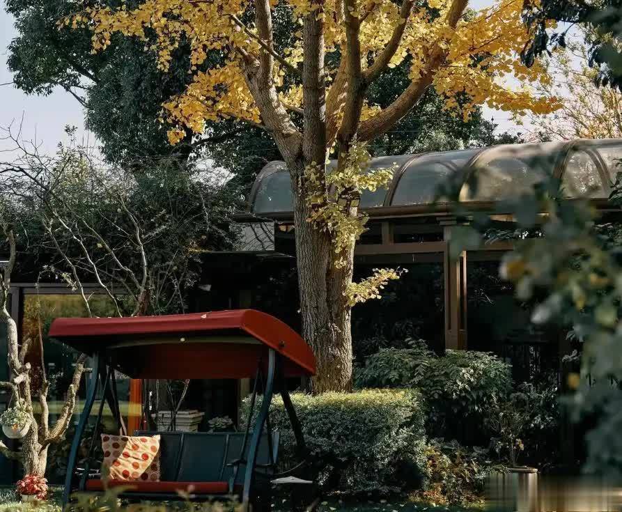 豪宅的户外更是令人惊艳,精心打理的花园四季有景,粗壮的银杏树形成独特风景线,远处的参天大树让人仿佛置身森林,更有一处面积堪比游泳馆的超大泳池,厉玲时常会在这里游泳、带娃,烟火气十足。